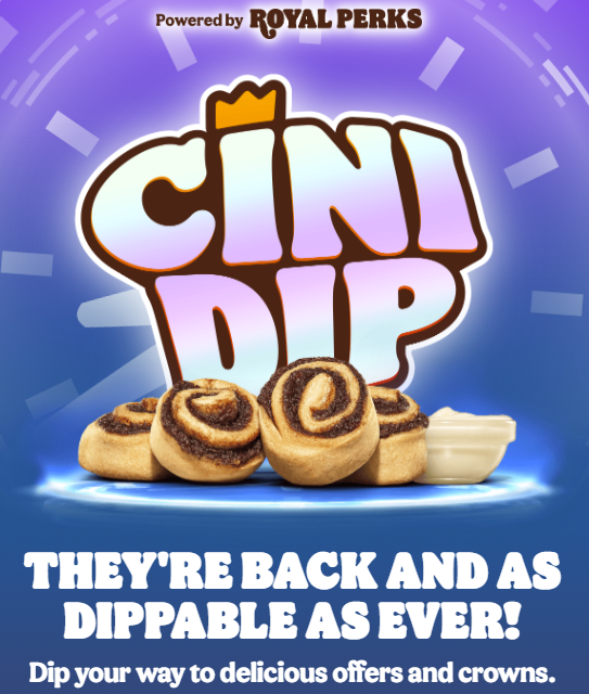 - Burger King has a new free to play game called Cini Dip that allows you to win free food/drinks or crowns