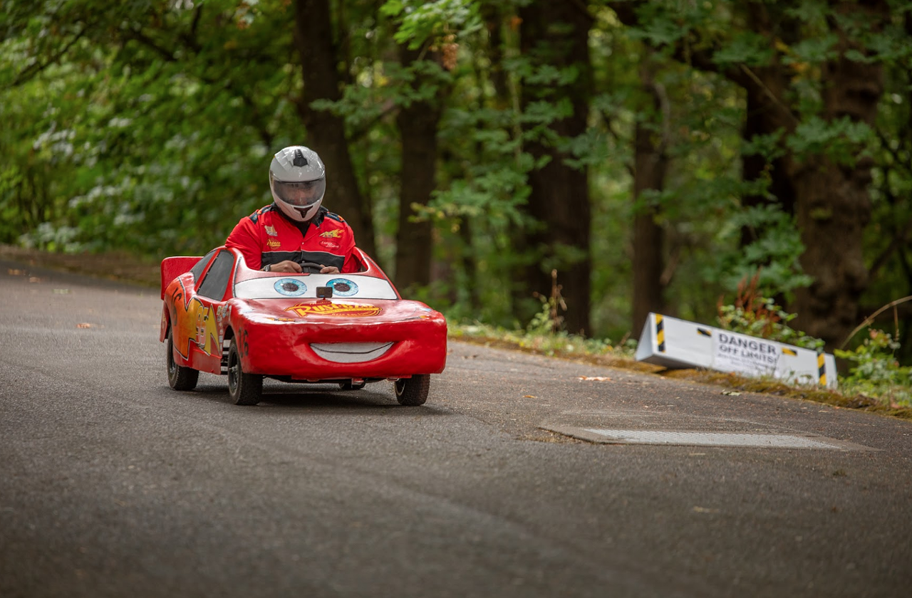 “We call our entry ‘The Fastest Car’,” says John Dixon, an engineer at Daimler Truck running in his ninth race, “because we took two days to build it. It’s not the fastest on the course, but it’s the fastest built. We normally kill ourselves all summer building [our car], but this one? We were on the waitlist until the last minute, so we just threw it together.”