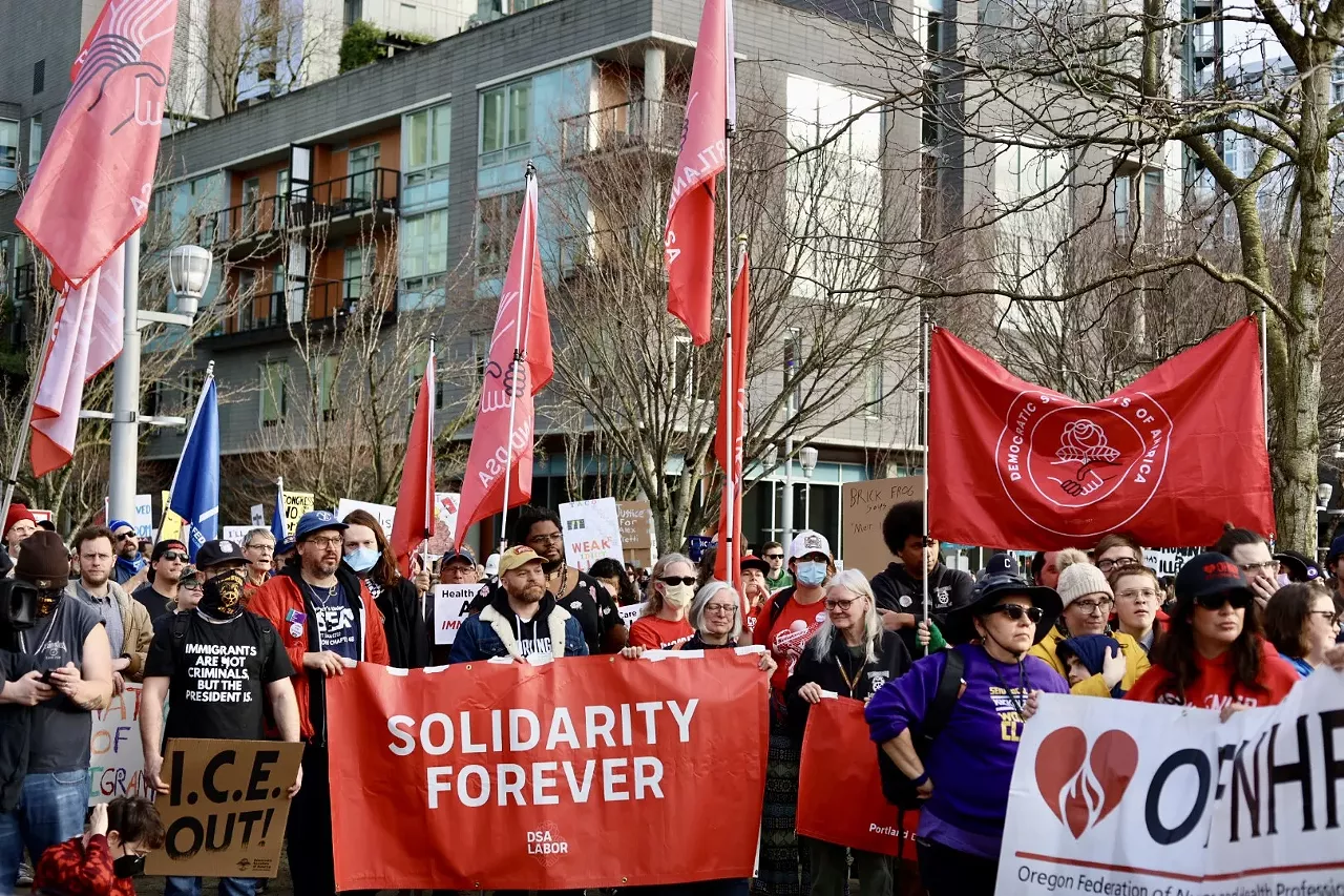 “The labor movement’s guiding principle is solidarity,” Graham Trainor, president of the Oregon AFL-CIO union federation, said at the rally. “That means that anything that aims to undermine our solidarity or divide our communities is a fucking labor issue.”