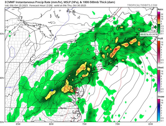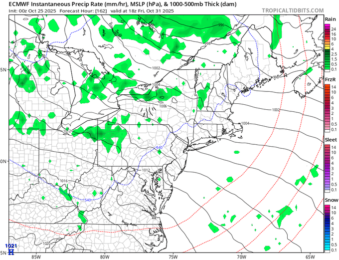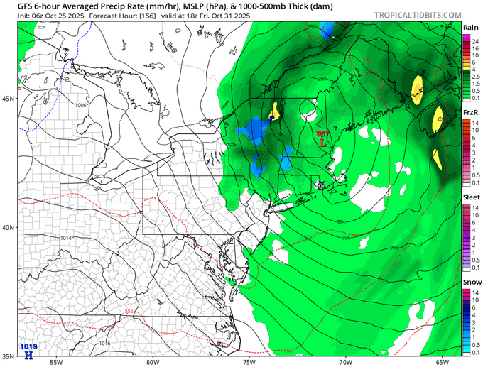 Then the question is, will this storm be out of here for Halloween and trick-or-treating? At this time, I still expect some showers on Friday. Below are the European and American models respectively. The latest run of the Euro clears us out. However, the GFS is not so optimistic.