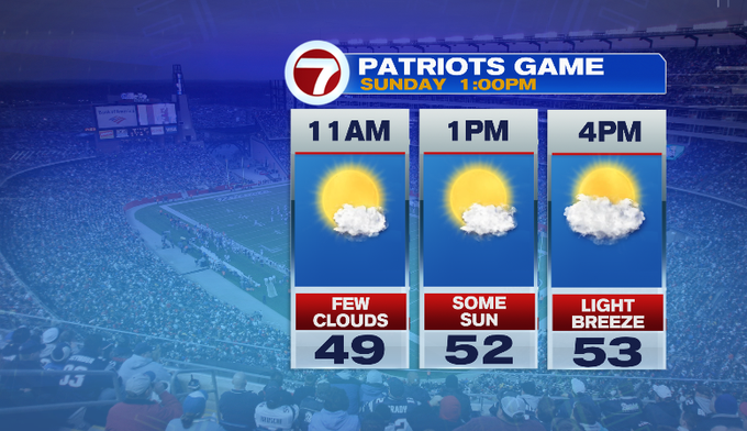 Tomorrow is more of the same. Although, high temperatures will stay a couple degrees lower than where we end up today. It’s ideal tailgating weather for the Patriots game tomorrow!