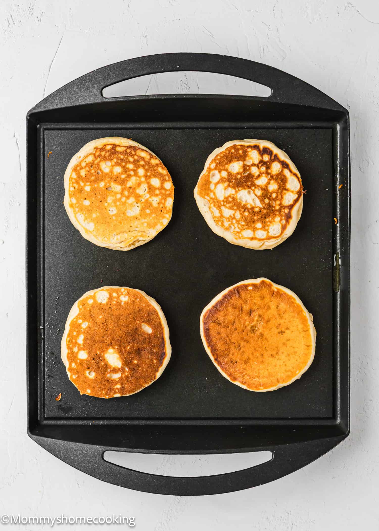 - Make sure the skillet isn’t on high heat as you might end up with pancakes that brown before the inside is cooked through.