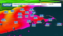 Winds could gust between 50 and 60 mph, especially along the immediate coast and for the Cape and the Islands. The winds could cause downed tree branches, power lines and power outages. High surf will also be a big concern, along with rip currents and coastal flooding. A Coastal Flood Watch has been posted for our coast from Sunday morning through late Monday night. Minor flooding is possible around high tide.