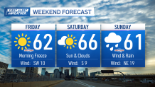 High temperatures will be in the low 60s on Sunday, then hover around the upper 50s Monday and Tuesday.