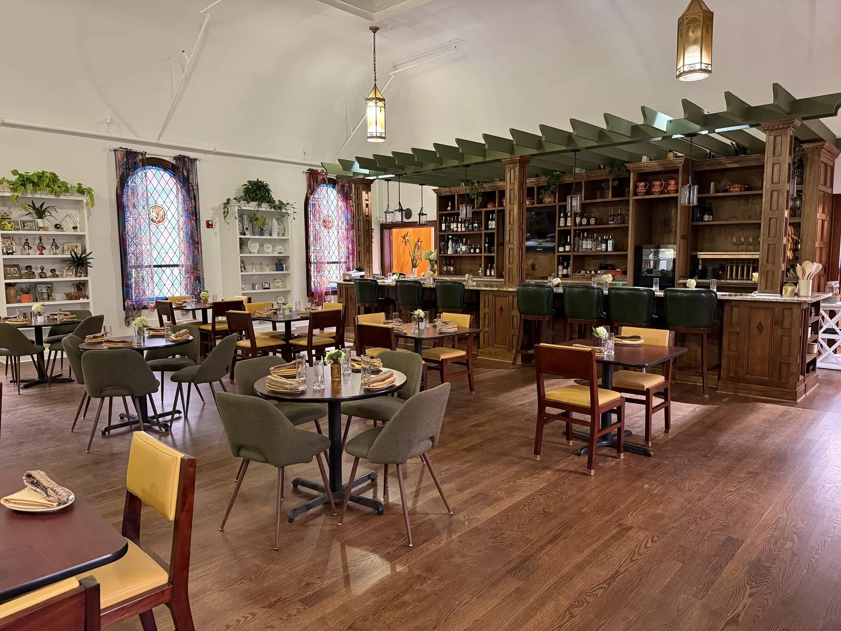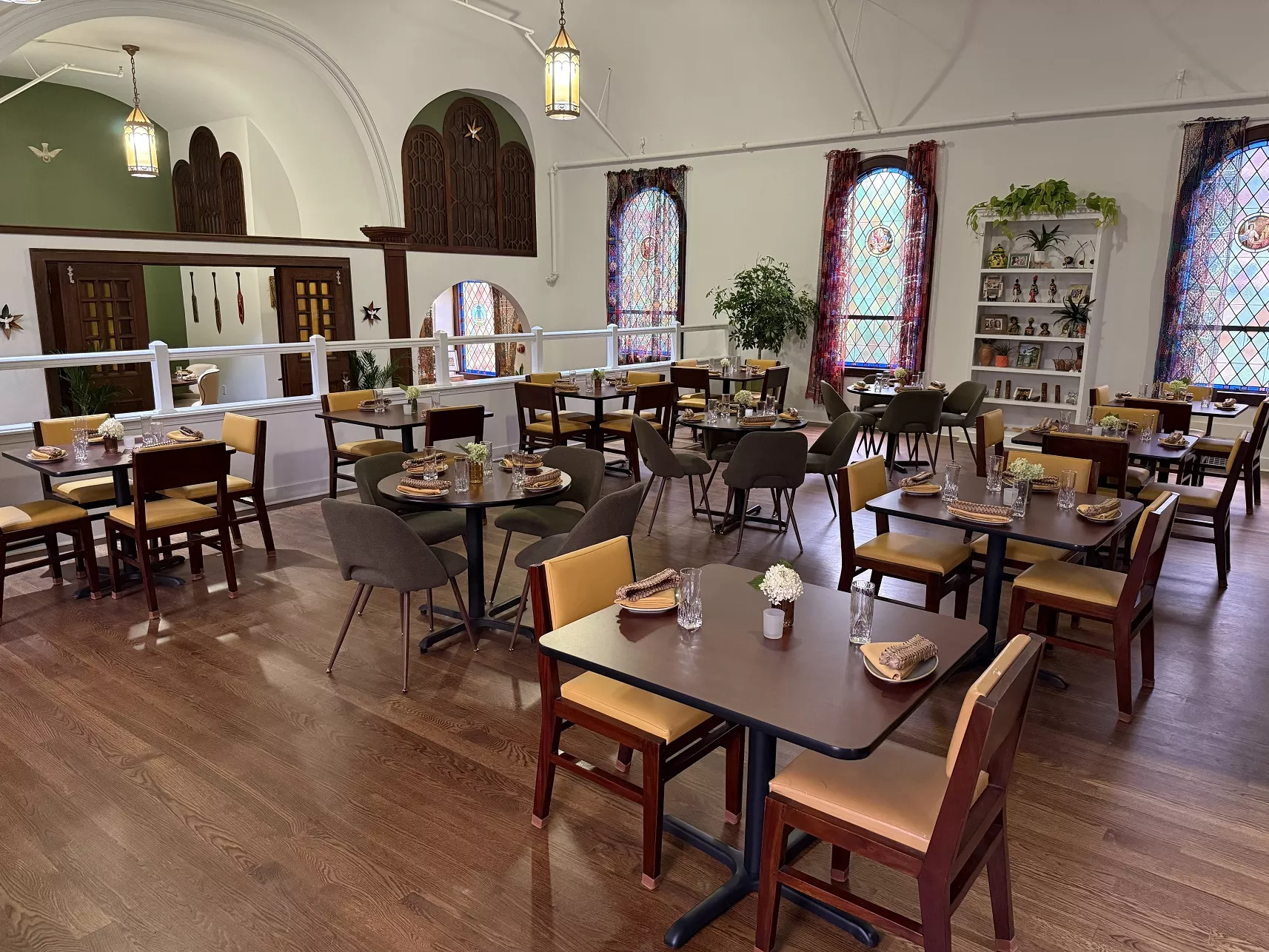 The move takes the owners from a charming 130-year-old Victorian to an exquisite Craftsman-style structure built in 1922 that was long home to St. Paul’s Evangelical Church. Inside and out, the building impresses with soaring ceilings, stained glass windows and stunning fixtures.
