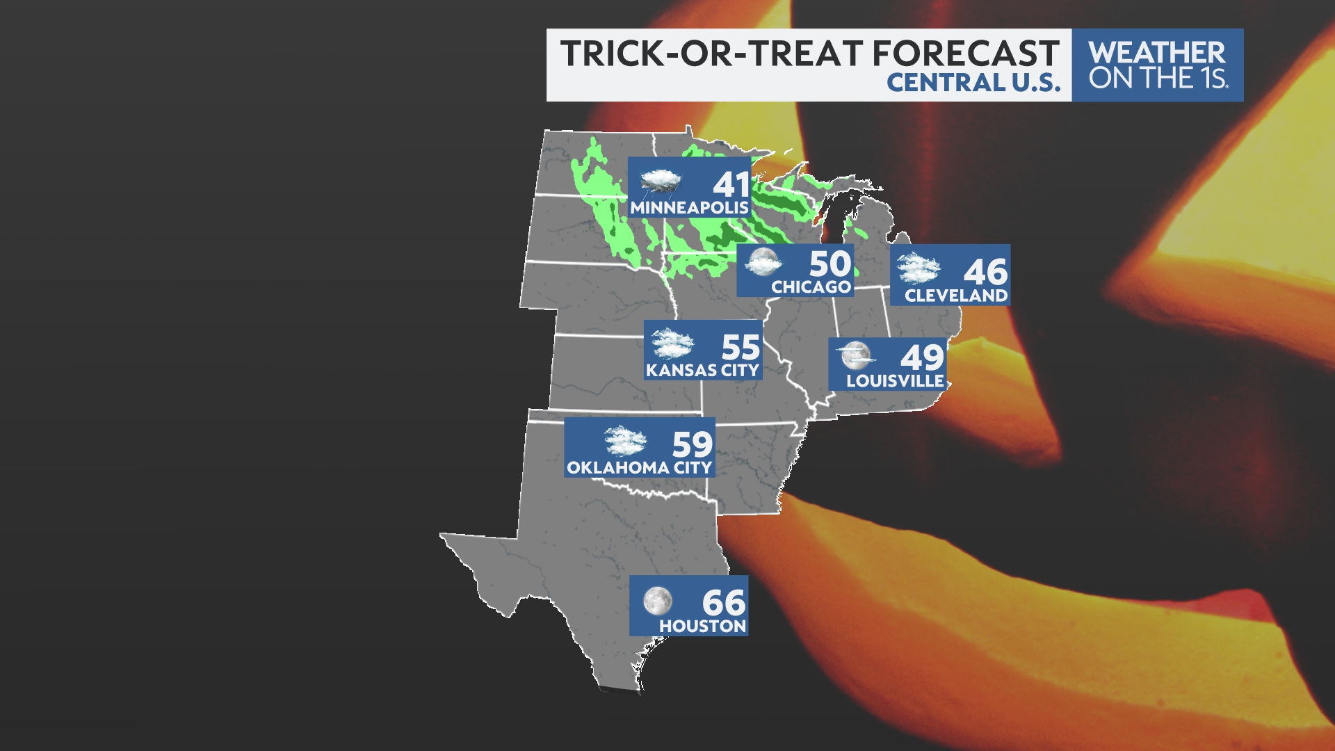 Most of the Central U.S. will also see dry and cool weather Halloween evening. The only exception will be parts of the Northern Plains, where some scattered showers may continue.