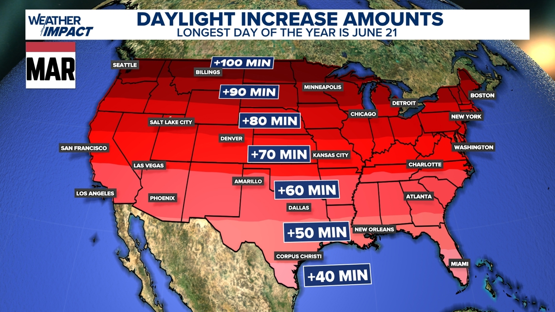 This increase in daylight is most dramatic across the central and northern United States. In these regions, the sun’s path changes more rapidly during late winter, allowing many locations to gain an additional 80 to 100 minutes of daylight between February and March. That extra sunlight can have a noticeable impact, improving mood, extending evening light, and signaling the approaching end of winter. Even amid cold temperatures, the lengthening days are a reliable reminder that spring is on the way.