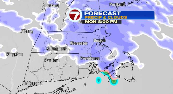 Snow will start falling after 4pm tomorrow, reaching Boston by 6pm.