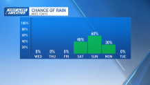 A little more wet weather is in the forecast for Saturday as another cold front pushes in. This time, though, we could see a couple of thunderstorms in our area by late afternoon into the evening. High temperatures will likely climb into the mid 80s. Then by Sunday it will start feeling like fall again with lower humidity and highs in the mid 70s.