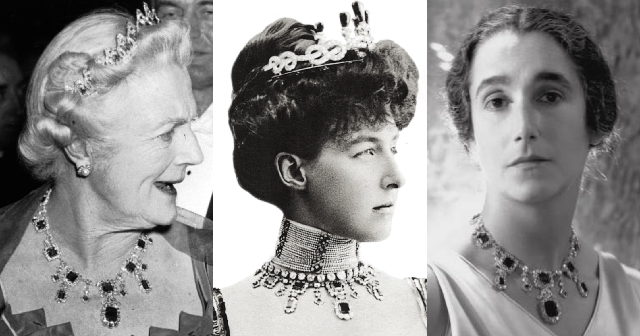 After Lady Cholmondeley’s death in 1989, the Emerald Necklace, and Tiara, were auctioned at Christie’s London on 20 June 1990, and went into a private collection until appearing at auction at Christie’s Geneva in 2015, when the necklace sold for CHF 2,629,000.