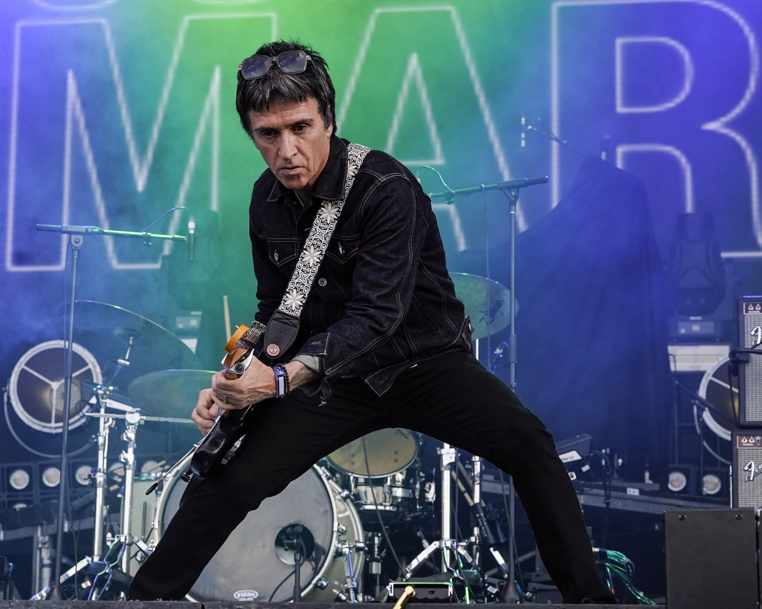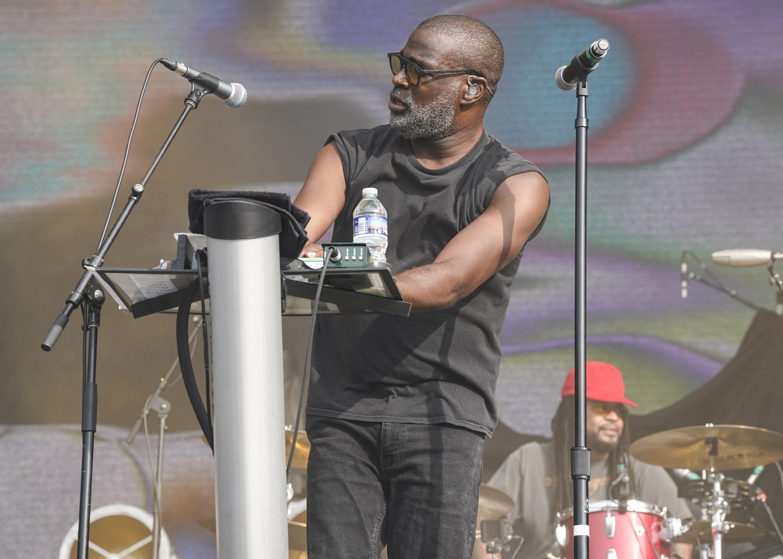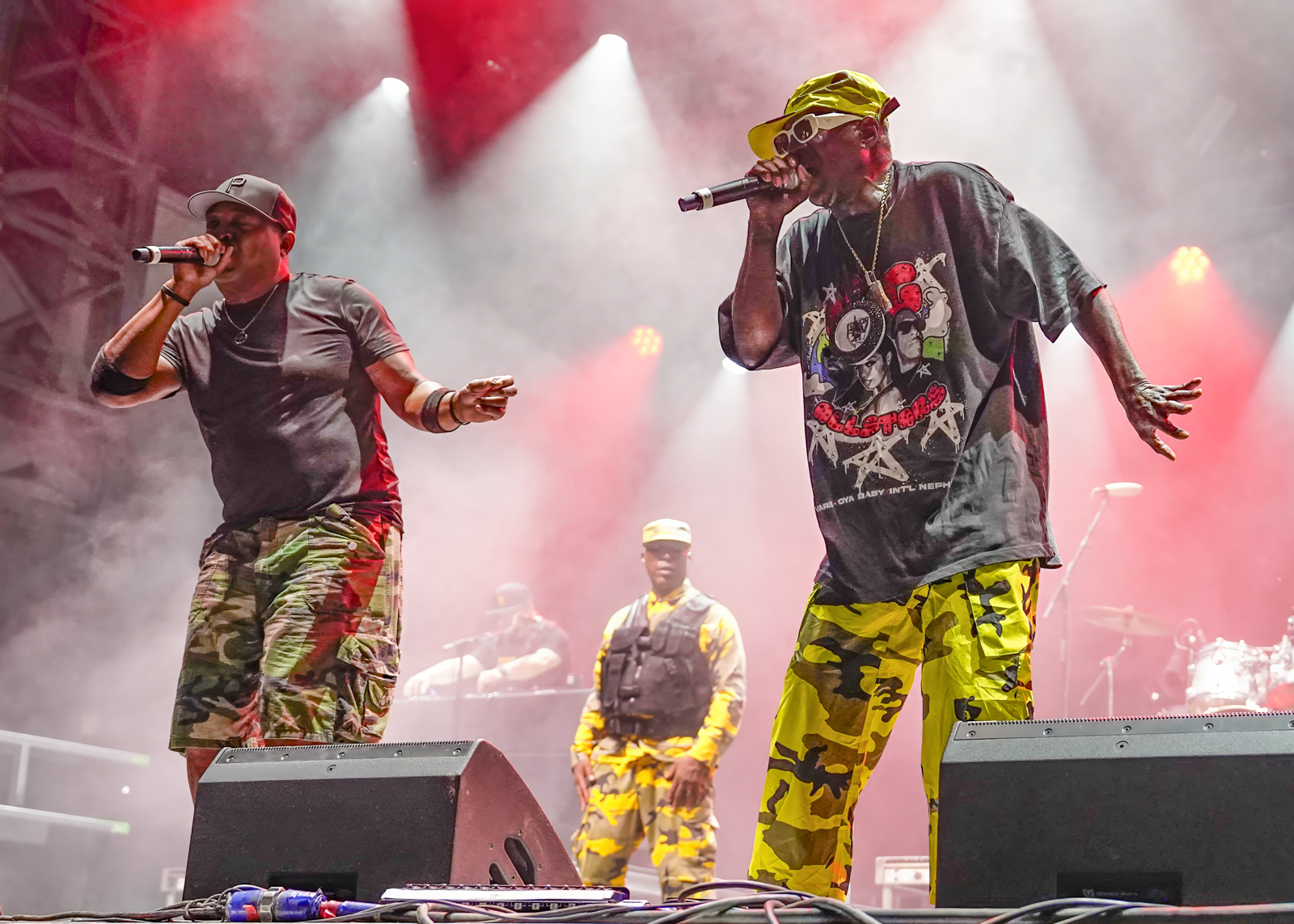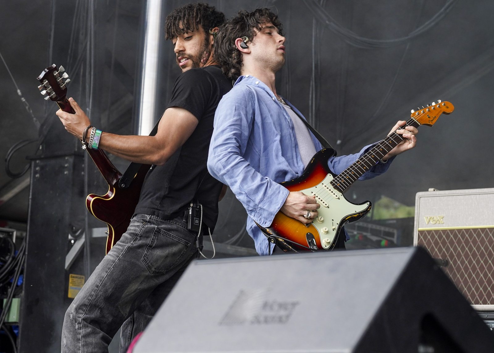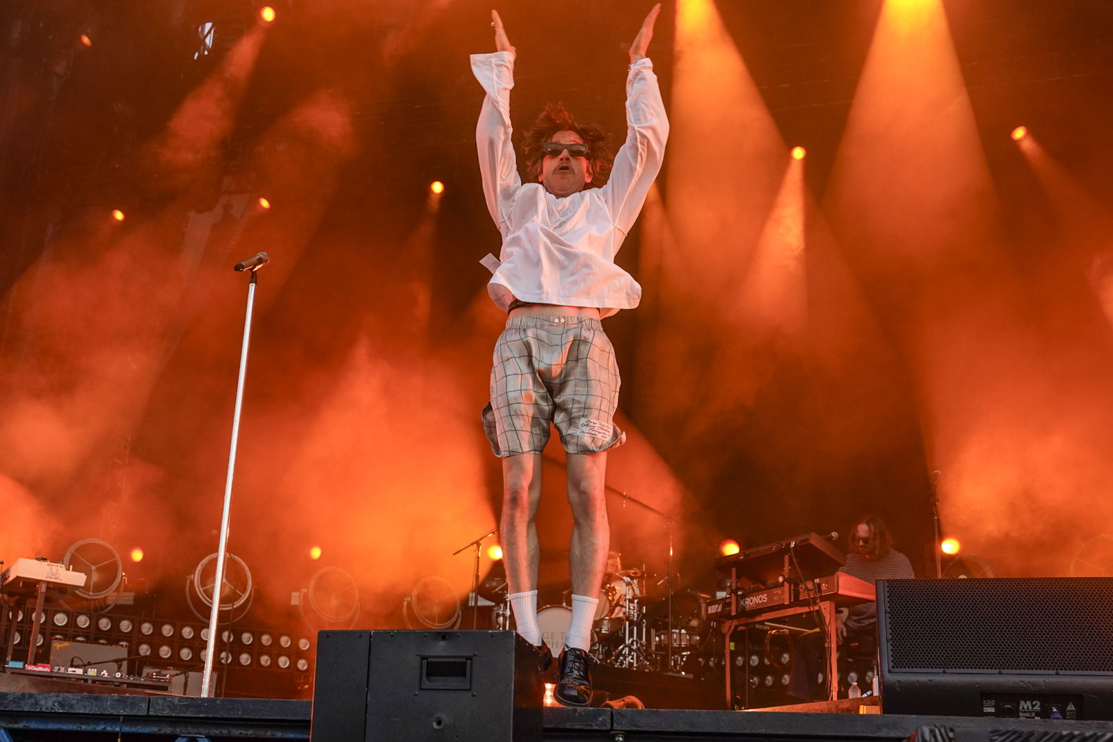 On Saturday, audiences braved high temperatures and a plethora of dust to enjoy shows by the Linda Lindas, TV on the Radio, and Public Enemy. Johnny Marr, formerly of the English rock band The Smiths, delivered a memorable set punctuated by some of the group’s hits, including “This Charming Man” and “There is a Light That Never Goes Out,” which turned into a whole crowd singalong at the set’s end. Marr joined The Black Keys for a turn during their show, where guitarist Dan Auerbach, drummer Patrick Carney, and an electric backup band turned out a slick, shred-heavy romp on the Piedmont Stage. Cage the Elephant served up one of the highest-energy performances of the weekend, riveting spectators in an hour-long set held aloft by Matt Schultz’s pure powerhouse vovals.