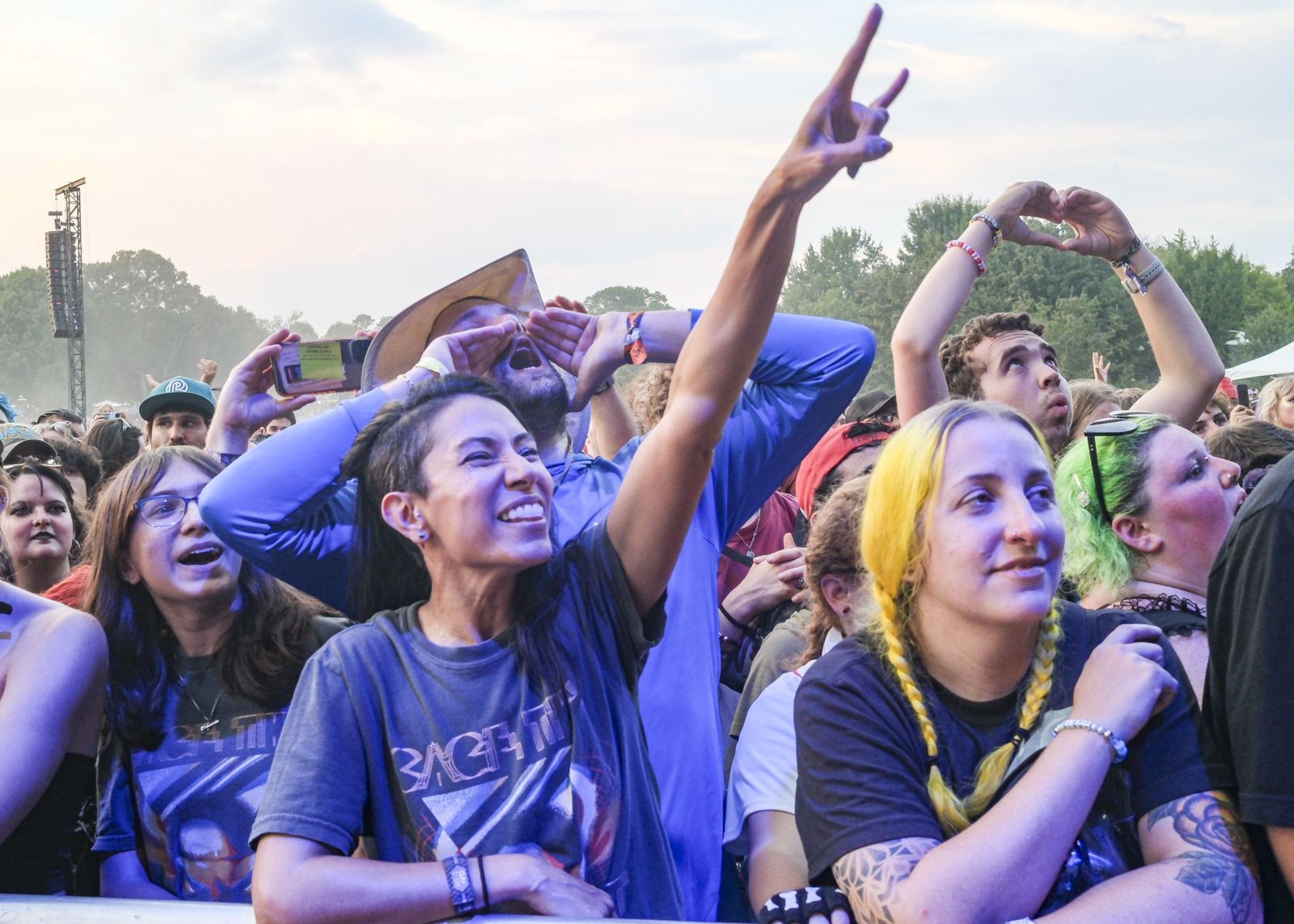 On Saturday, audiences braved high temperatures and a plethora of dust to enjoy shows by the Linda Lindas, TV on the Radio, and Public Enemy. Johnny Marr, formerly of the English rock band The Smiths, delivered a memorable set punctuated by some of the group’s hits, including “This Charming Man” and “There is a Light That Never Goes Out,” which turned into a whole crowd singalong at the set’s end. Marr joined The Black Keys for a turn during their show, where guitarist Dan Auerbach, drummer Patrick Carney, and an electric backup band turned out a slick, shred-heavy romp on the Piedmont Stage. Cage the Elephant served up one of the highest-energy performances of the weekend, riveting spectators in an hour-long set held aloft by Matt Schultz’s pure powerhouse vovals.