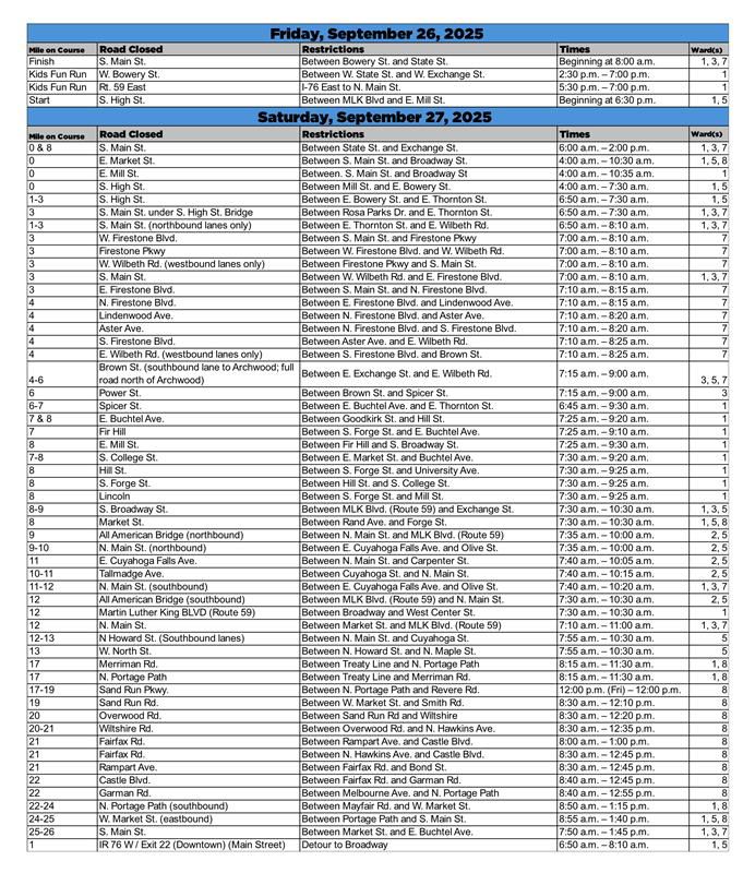 Road closures for Akron Marathon weekend