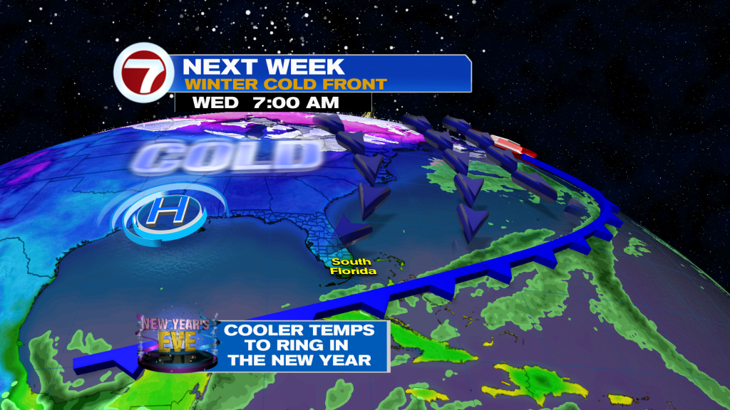 Looking ahead, a strong cold front will sweep across Florida on Tuesday. There won’t be much of a rain chance with it, however, we’ll turn sharply colder behind the front heading into New Years Eve and New Years Day.