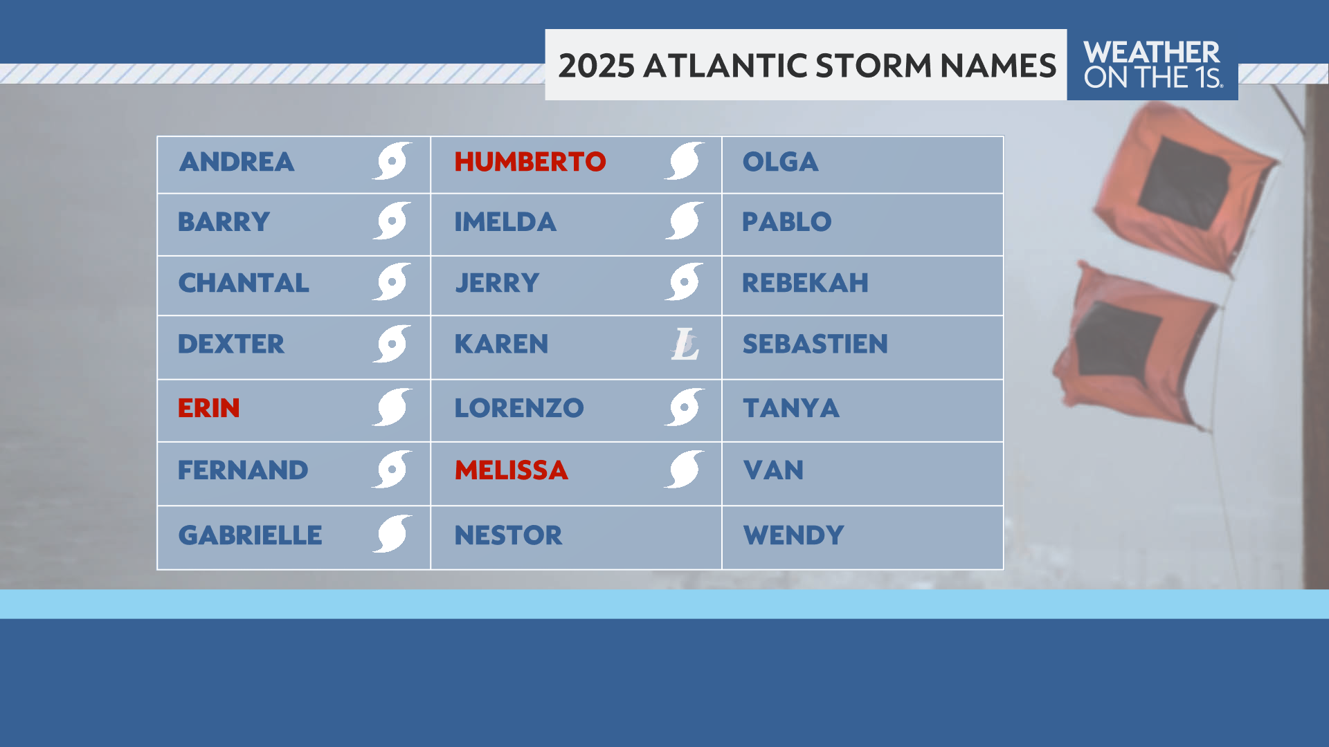 The WMO names Atlantic storms and the list is recycled every six years. The list alternates between male and female names, and includes English, French and Spanish names to reflect the geographical coverage of Atlantic and Caribbean storms.