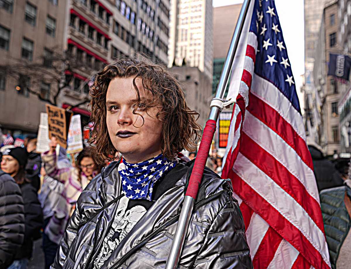 “U.S. citizen, former f—ing veteran,” says her wife, standing outside the passenger side of the SUV holding up her phone. “You wanna come at us, you wanna come at us, I say go get yourself some lunch big boy.”