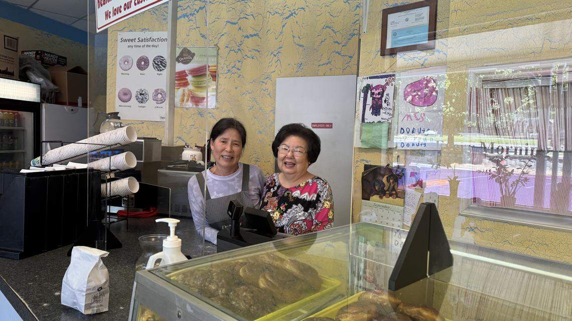 Kate Kim (left) and owner Songcha Lee at MJ Donuts in Pineville. By Shindy Chen