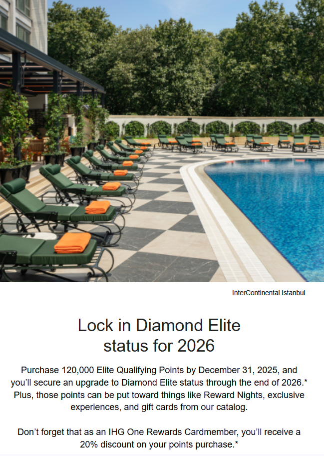 - IHG is offering Diamond status until December 31, 2026 when you purchase 120,000 points