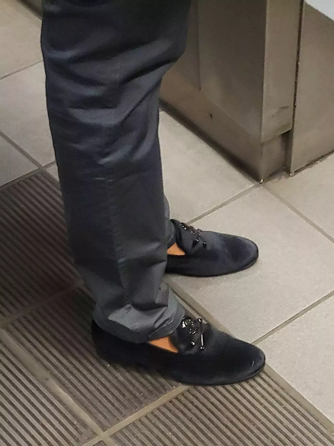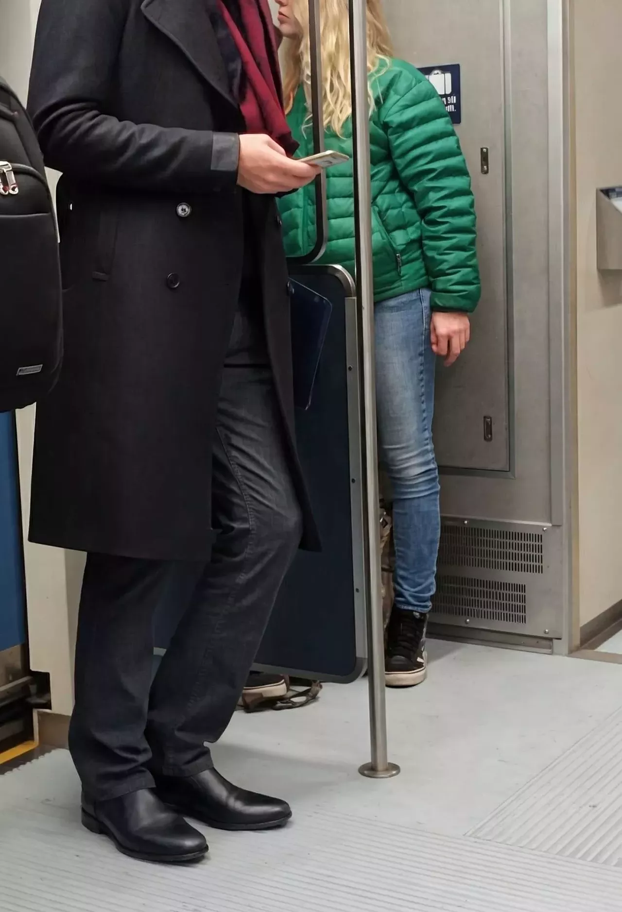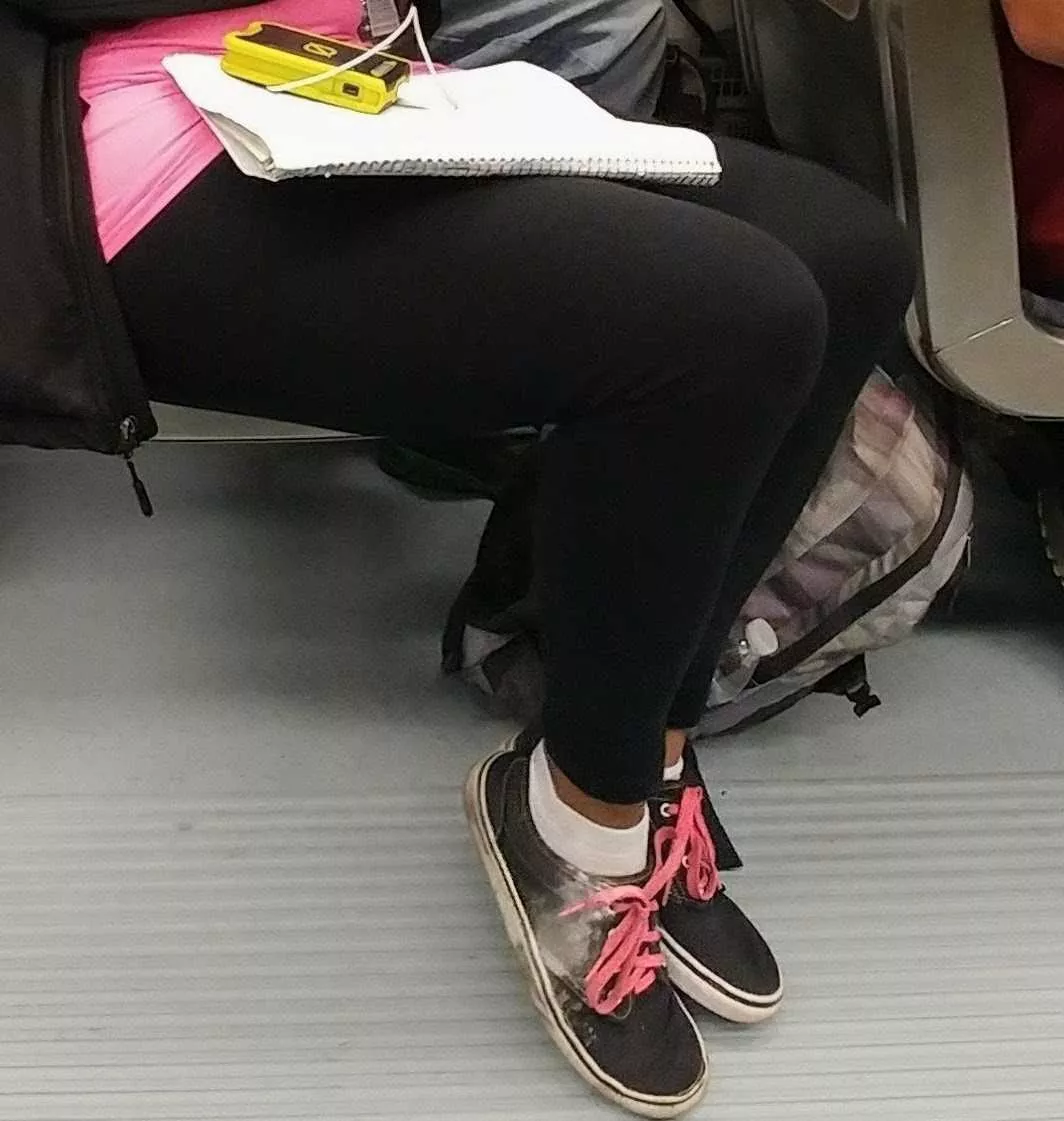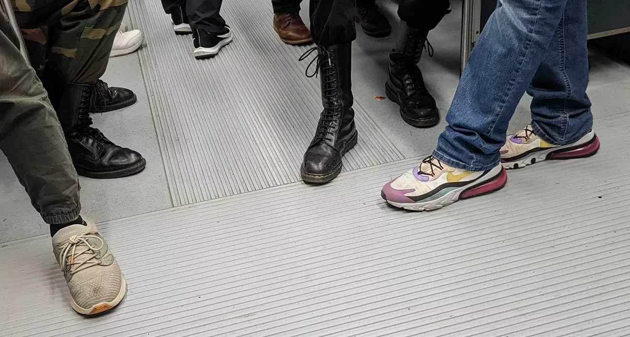 Standing shoes on the train love to strike a pose.